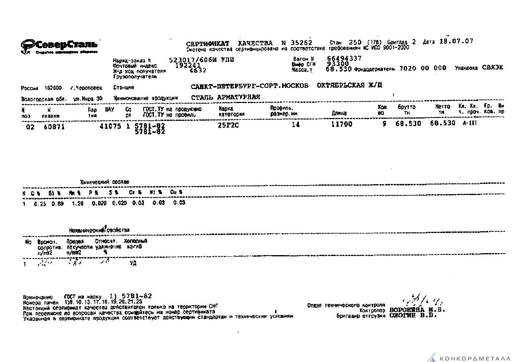 С каждой товарной позицией мы предоставляем все сертификаты и паспорта качества, а также товарно-транспортную накладную.