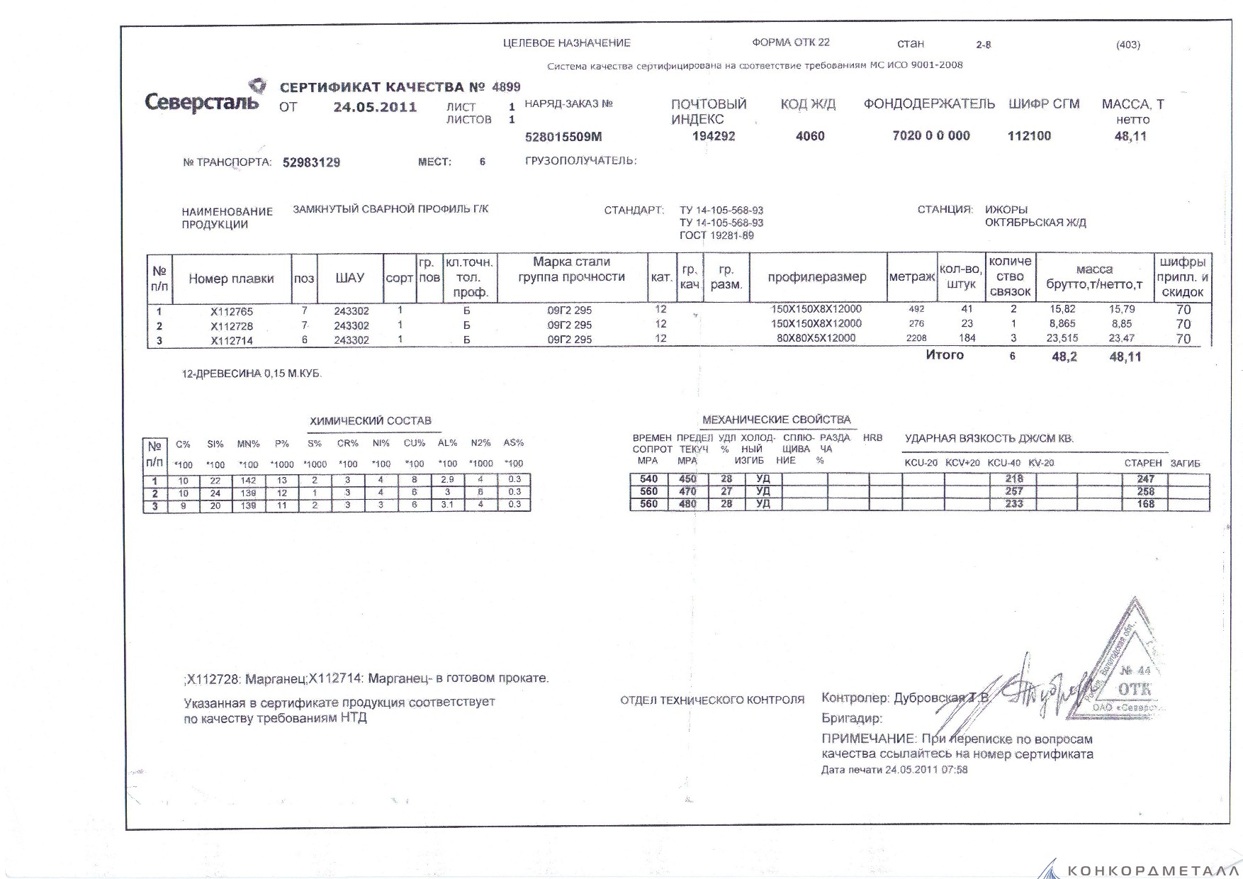 С каждой товарной позицией мы предоставляем все сертификаты и паспорта качества, а также товарно-транспортную накладную.